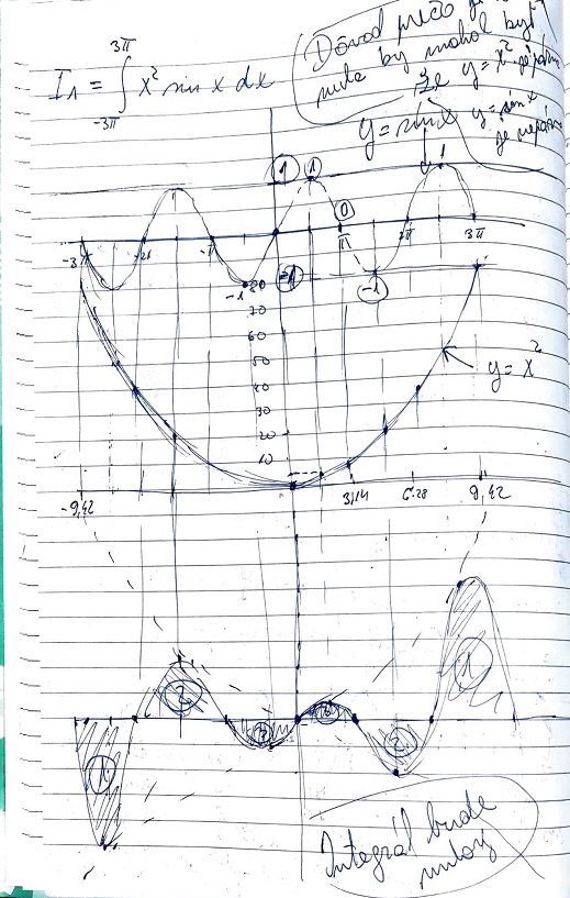 Dôvod prečo je ten integrál nulový je, že ide o nepárnu funkciu, súmernú podľa stredovej súmernosti, so stredom v začiatku súradnej sústavy, ku každej kladnej hodnote prislúcha rovnaká záporná, preto sa to celkovo vynuluje.